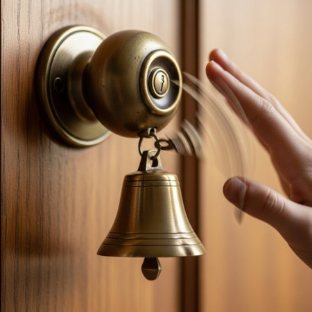 A close-up shot captures a hand ringing a small, polished golden handbell. Magical sparkles emanate from the bell's clapper, suggesting a wish, an alert, or a touch of magic.