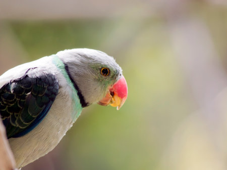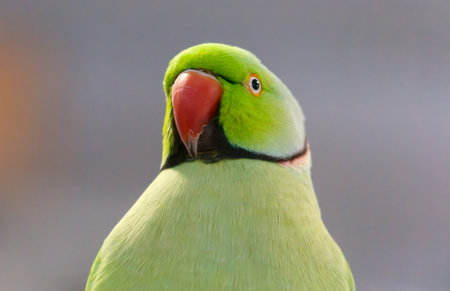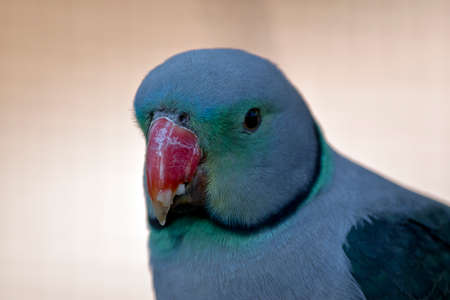 Closeup shot of a rose ringed parakeet Head, beak, neck in focus