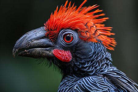Featuring a close up of a bird with red hair, high quality, high resolution