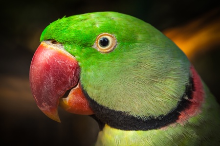 Green Alexandrine parakeet, living in Asian region, close up