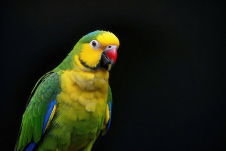 Parrot on a black background, close-up, copy space