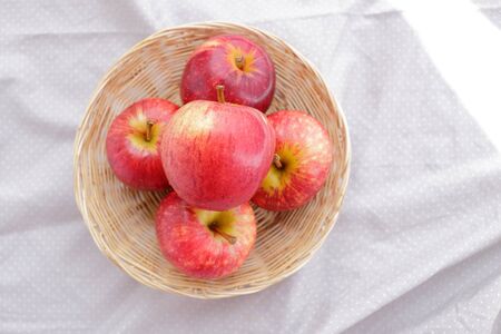 Apples fruit in basket and fabric