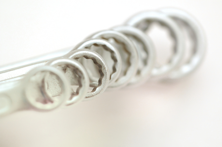 Spanner Set Isolated. Silver coloured spanners lying side by side in white background.