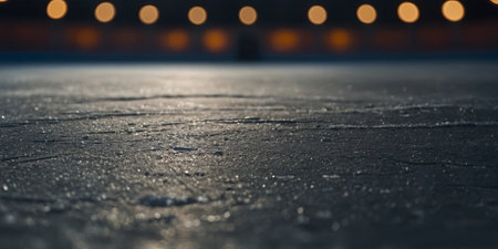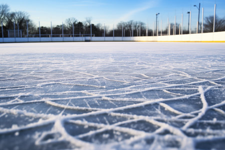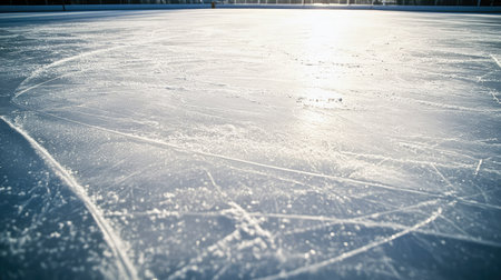 An icy surface reflecting light, showcasing intricate textures and patterns. Ideal for winter-themed concepts or sports-related imagery.