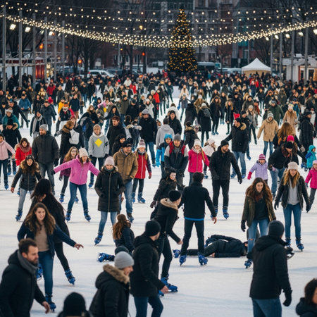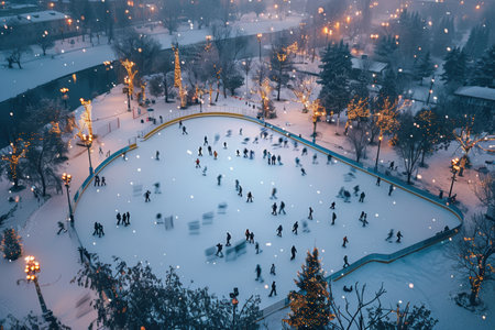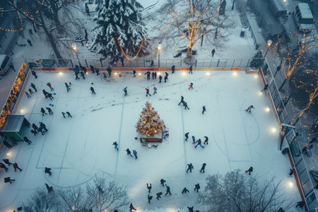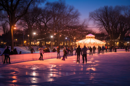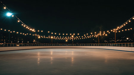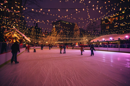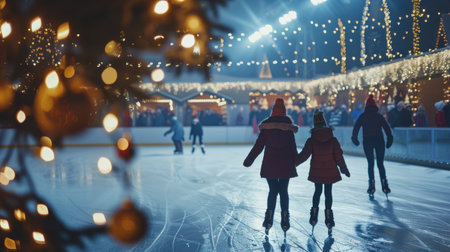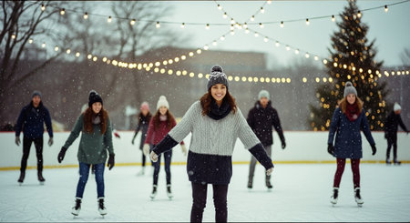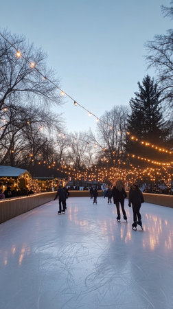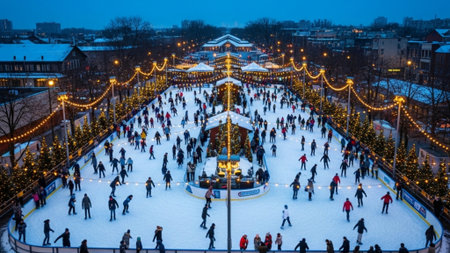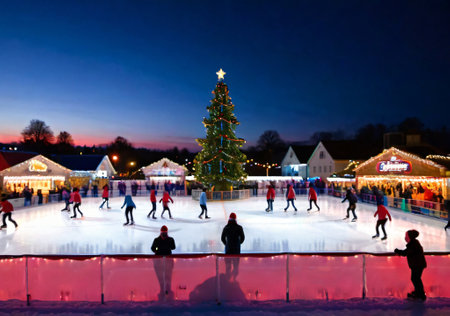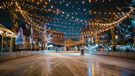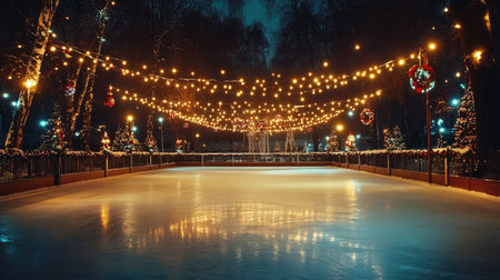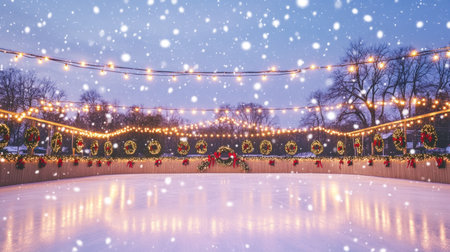 Joyful Christmas ice skating rink, decorated with festive lights and holiday cheer.