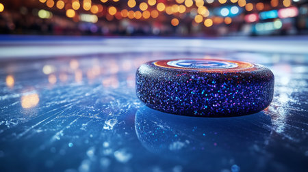 AI Generated. A close-up of a hockey puck with skate marks etched into its surface