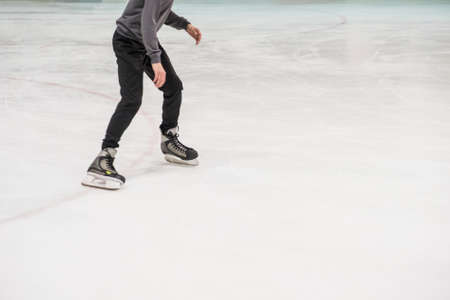 Woman and man together on the ice rink. Winter activities and fun on the ice rink. ice and feet