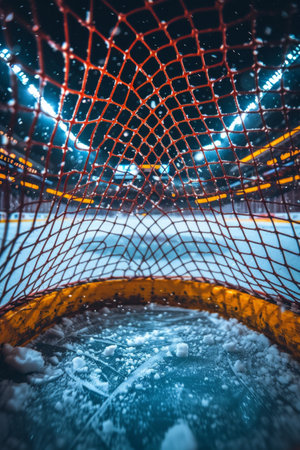 detailed shot of goal crease marked on icy rink, created with generative ai