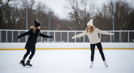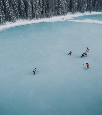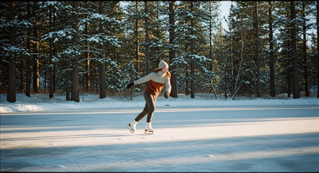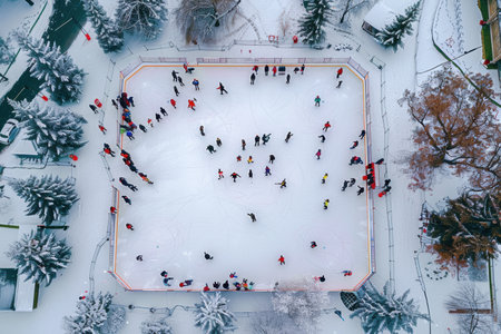 Outdoor Ice Rinks: Showcase the joy of ice skating and hockey on frozen ponds or man-made rinks. - Generative AI