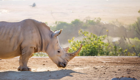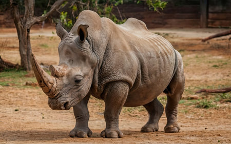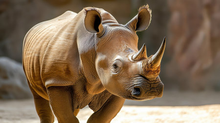 A stunning rhinoceros gracefully walks through its natural habitat, showcasing its unique features and strong presence. Perfect for wildlife lovers.