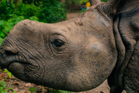 Rhino eating in Sauraha village, Chitwan, Nepal. High quality photo