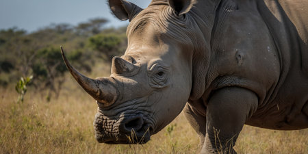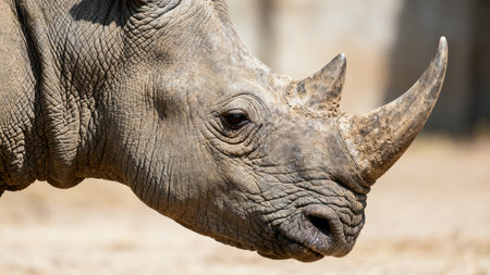 Digital image of white rhino head, side view, photorealistic, high quality, high resolution