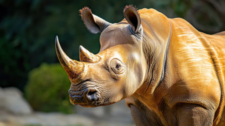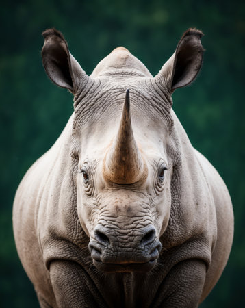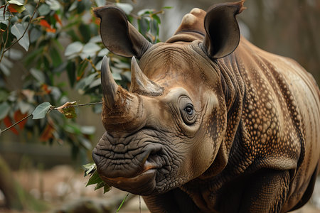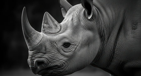 This stunning close-up of a rhinoceros shows its intricate features and strong presence. The detailed skin and majestic horn highlight its beauty in nature.