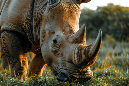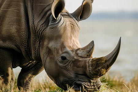 Portrait of a Rhinoceros (Rhinocerotidae family) grazing