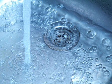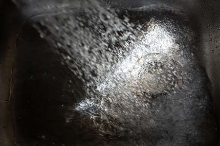 Water flowing and splashing in sink, Light and shadow, Close up & Macro shot, Selective focus, Healthcare concept