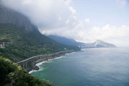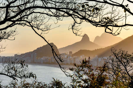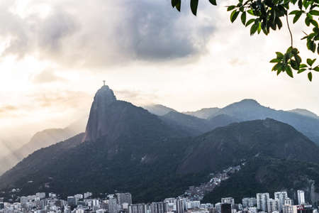 View of the Corcovado Mountain and the Christ the Redeemer as seen from the top of the Two Brothers Hills. In Rio de Janeiro, Brazil