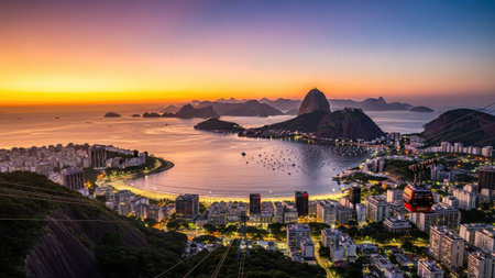 Amazing sunset view from the top of the Sugarloaf Mountain in Rio de Janeiro, Brazil