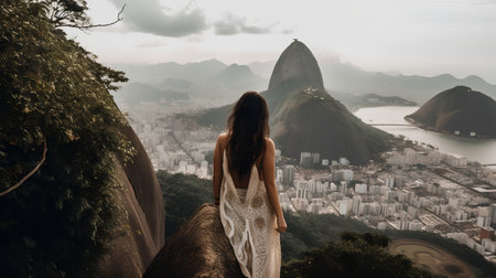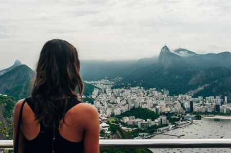 Beautiful young woman standing on top of a hill in Rio de Janeiro