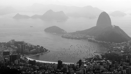 Aerial view of city and harbor of Rio de Janeiro in Brazil from Christ the Redeemer statue