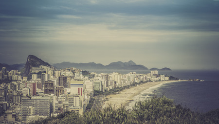 Aerial view of the famous Copacabana Beach, as seen from the top of the Sugarloaf Mountian. In Rio de Janeiro, Brazil