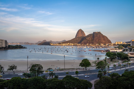 Sunset view of mountain Sugar Loaf and Botafogo. Rio de Janeiro