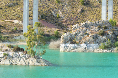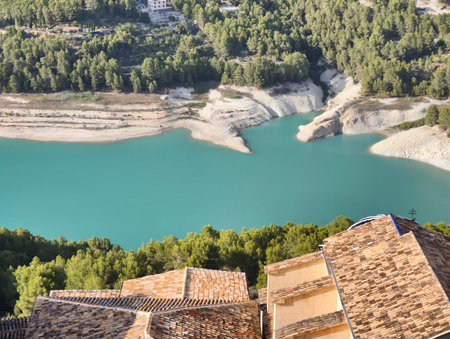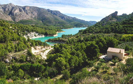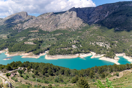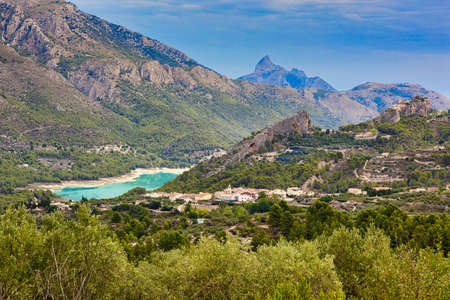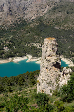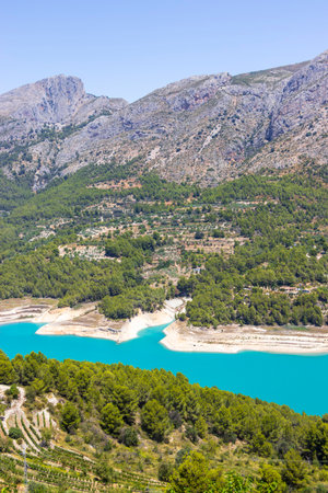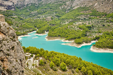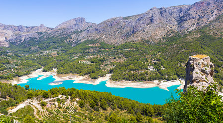 View on Guadalest water reservoir with turquoise water in Alicante province Spain