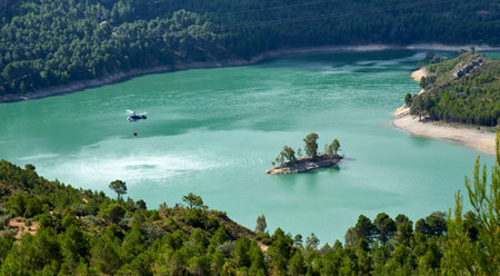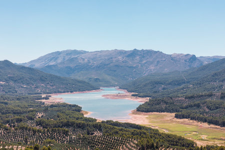 Panoramic view of the Tranco swamp in the Sierra de Segura in Jaen, Andalusia, Spain.