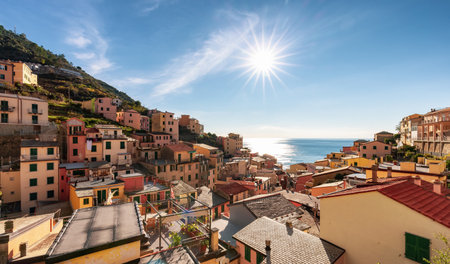 Scenic view to Riomaggiore, one of five famous villages of Cinque Terre in Liguria, Italy