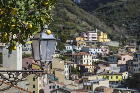 Traditional Mediterranean architecture of Riomaggiore, La Spezia, Liguria, Italy