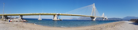 Panorama of The cable bridge between Rio and Antirrio from Nafpaktos, Patra, Western Greece