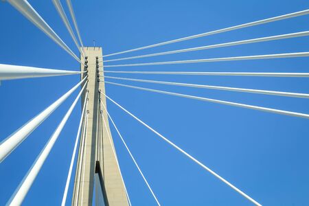 Detail of the multi-span cable-stayed bridge Rio - Antirrio, in Patras city, Greece