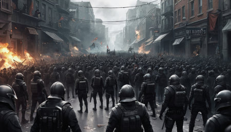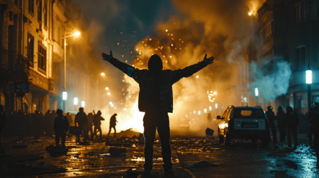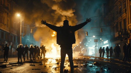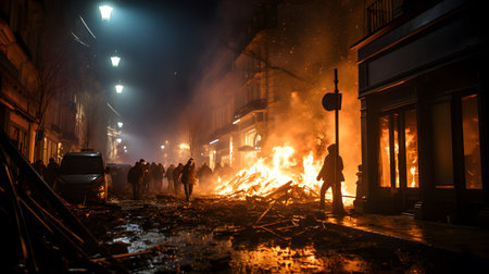 Urban turmoil, street riots civil unrest and societal tensions, chaos and intensity of public protest and demonstration in the heart of the city