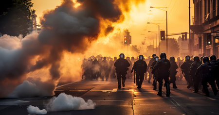 Protesters confront police amidst smoke and turmoil a visual representation of social unrest