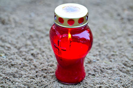 Burning candle on the grave of the unknown soldier in the cemetery