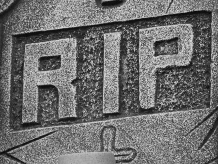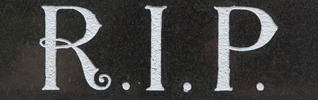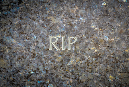 A gravestone with the letters RIP engraved on it.