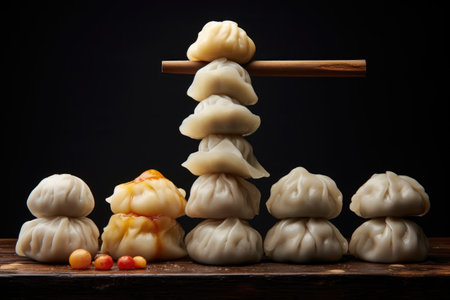 stack of raw, uncooked dumplings in a row, created with generative ai