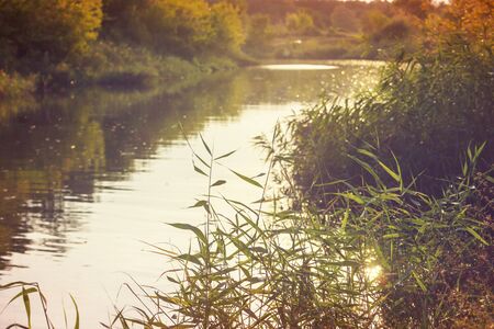 Sunset over a small river in the countryside. Landscape.