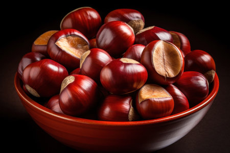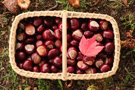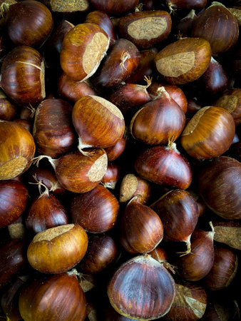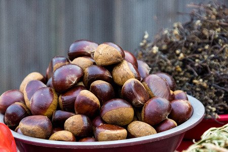set view of chestnuts collected one autumn day and ready to be used in a meal