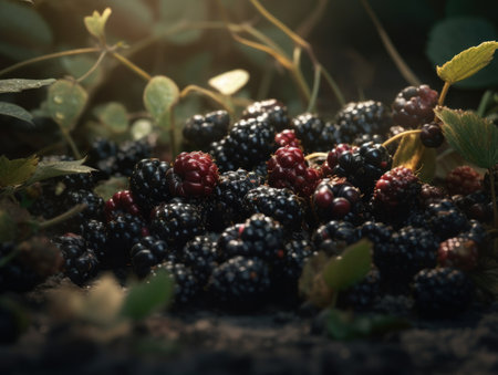 Beautiful organic background of freshly picked blackberry created with Generative AI technology