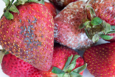 Spoiled cherries on a white background. Rot, mold, spoiled foods