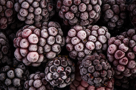 bright delicious natural background of many ripe unusual blue fragrant raspberry berries