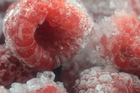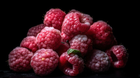 This close-up image features juicy, ripe raspberries showcasing their vibrant red color and textured surface, perfect for culinary projects and fresh fruit illustrations.