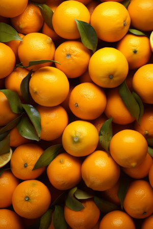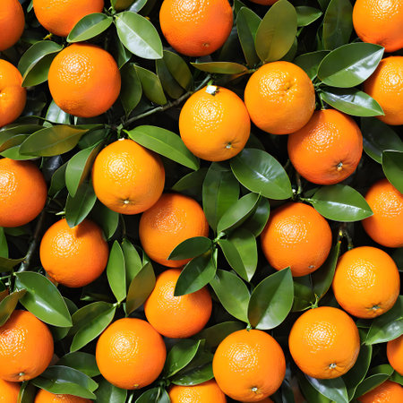 Uniform arrangement of vibrant and fresh tangerines. The oranges exhibit a natural and appealing look ideal for various applications including food advertising and nutrition-focused content