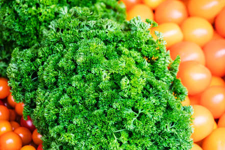 Natural green parsley in a bunch on bright greenery.
