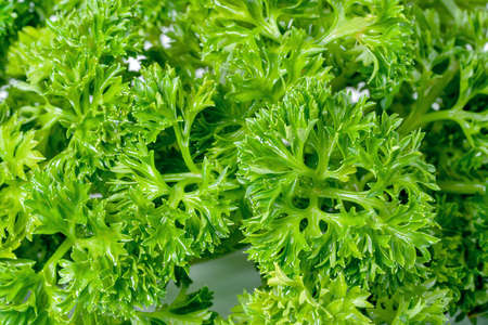 Parsley leaves close up detail, Food background and texture with copy space