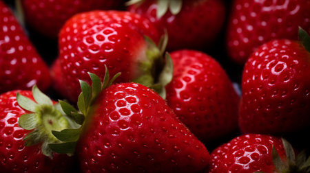 An AI generated illustration of A vibrant macro shot of fresh, ripe red strawberries