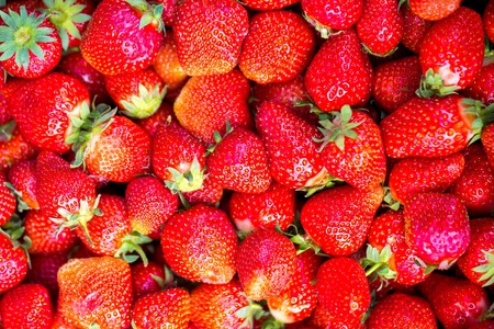 A group of fresh strawberries background. Close up, top view. Fruit and healthy food concept.