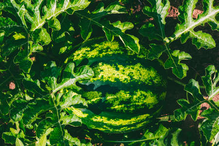 Fresh strawberries with dew on lush green leaves - nature and food photography