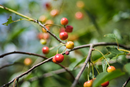 Cherry berries on a Bush in the garden
