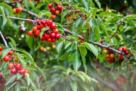 Fresh cherries tree red on in italy
